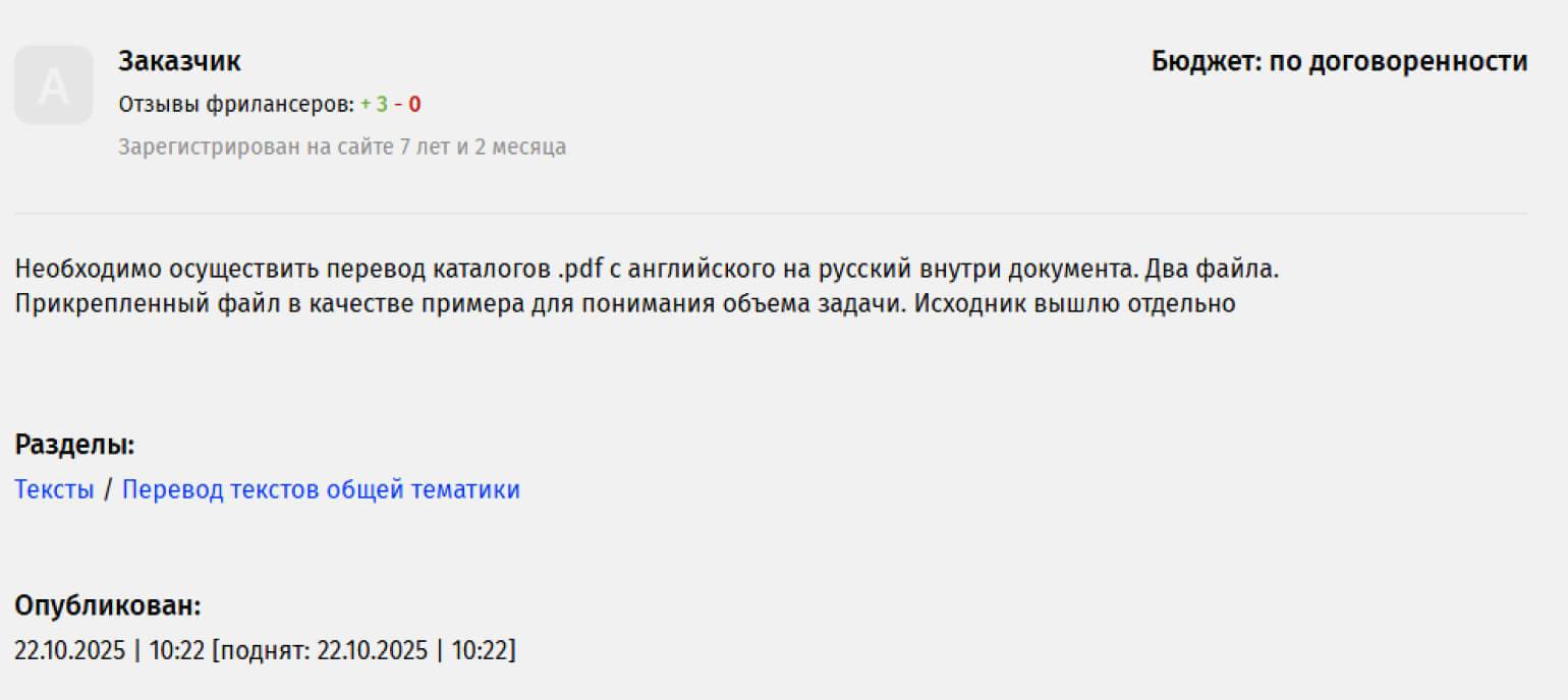 На фриланс-биржах стоимость перевода текста обычно начинается от 500 рублей. Как и в других отраслях, доход зависит от количества заказов и сложности выполняемых задач.