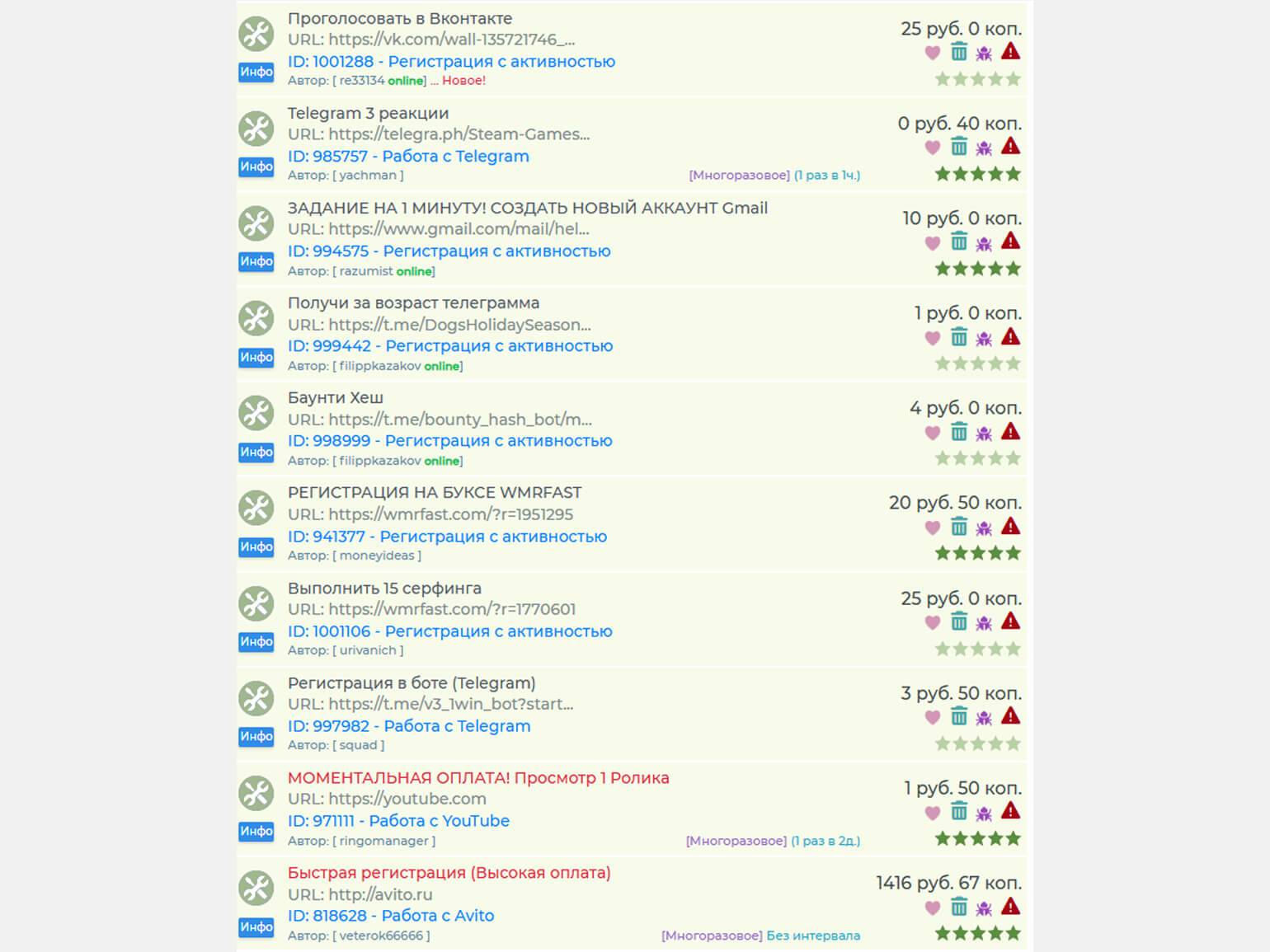 Такую работу может делать любой человек. Но и плата за такие задачи небольшая. За простые действия вроде перехода по ссылке платят от 0,01 до 0,04 рубля, а за более сложные задачи (например, написать комментарий, установить приложение или опубликовать отзыв) можно получить 5–20 рублей.