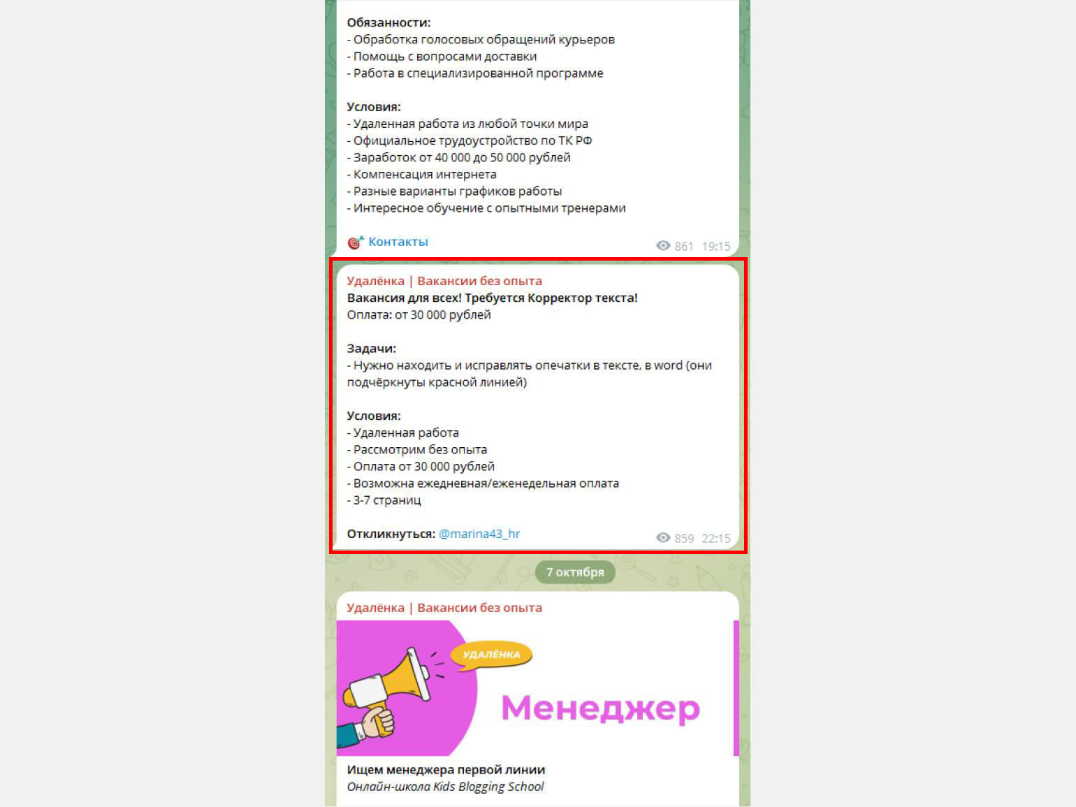 Чаще всего сомнительные вакансии можно встретить в чатах и каналах в Telegram, а также в группах по поиску работы во «ВКонтакте». На остальных площадках они встречаются реже, но всё равно нужно быть бдительным и не соглашаться на сомнительные предложения.
