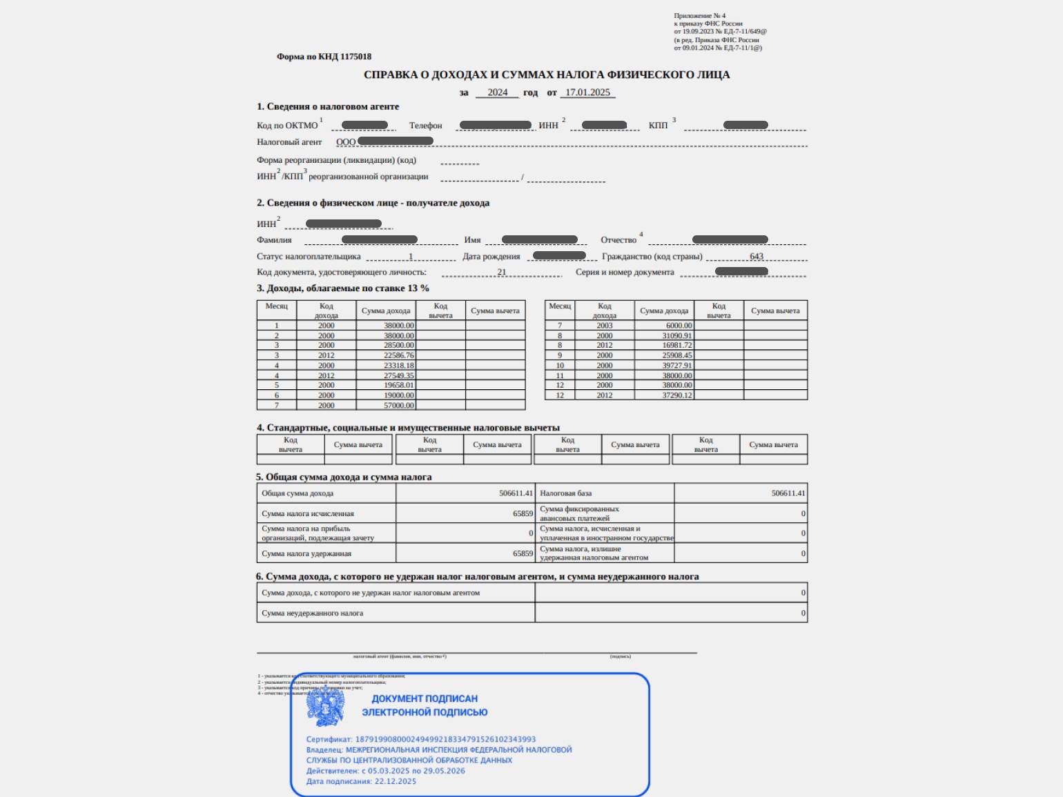 Справка о доходах и суммах налога физического лица в составе отчёта 6-НДФЛ (Приложение №1). Это не аналог 2-НДФЛ, а часть отчёта, который работодатель подаёт о сотрудниках в ФНС. 2-НДФЛ формируют на базе такого отчёта 6-НДФЛ (Приложение №4).