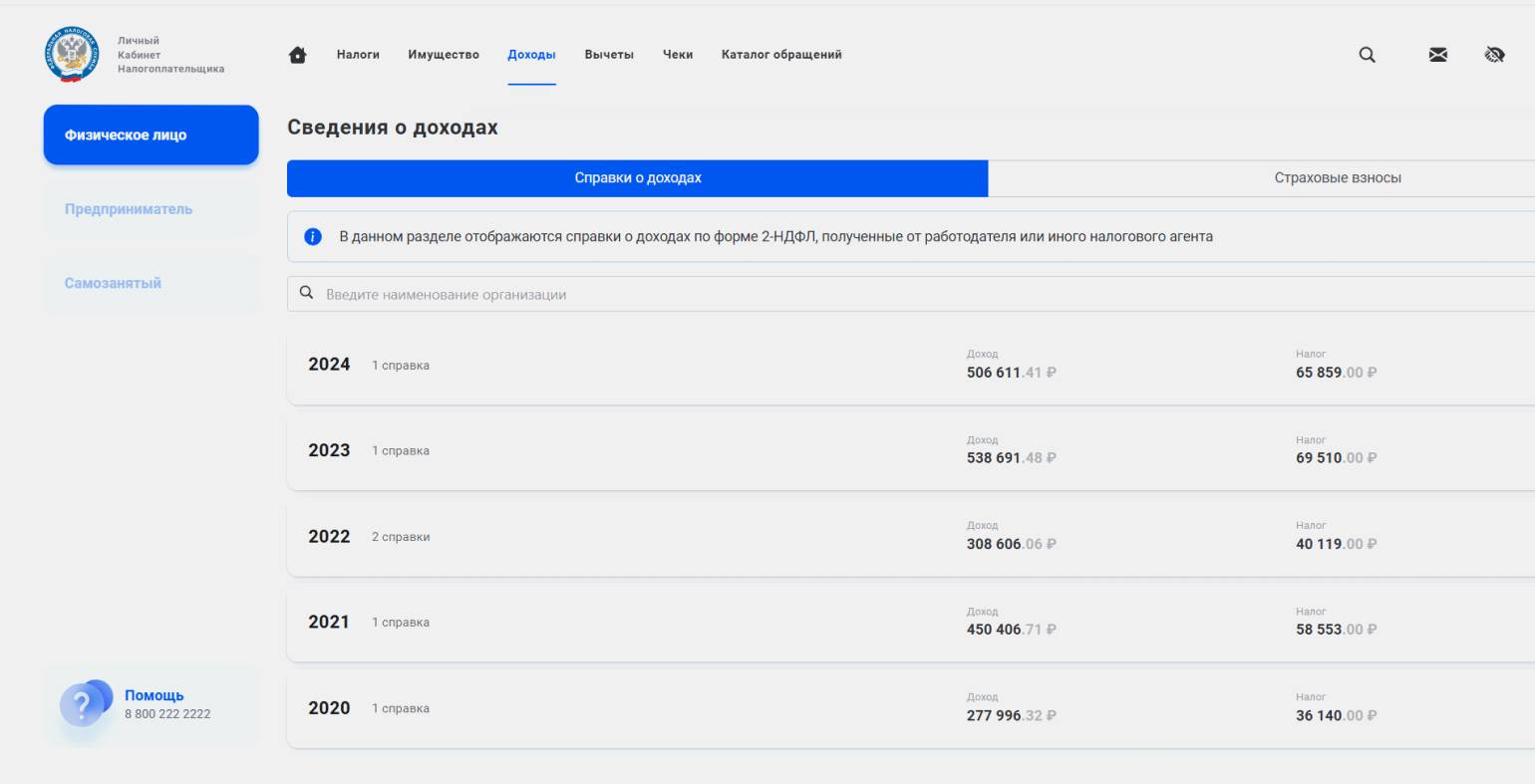 Справку 2-НДФЛ можно оформить, только если были доходы, с которых удерживали НДФЛ, — например, по договору от сдачи жилья в аренду или по договору ГПХ. Чтобы подтвердить их, можно, например, обратиться в МФЦ, в ФНС — или сделать справку онлайн на «Госуслугах» или в личном кабинете налогоплательщика. Алгоритм действий такой же, как мы описывали выше.