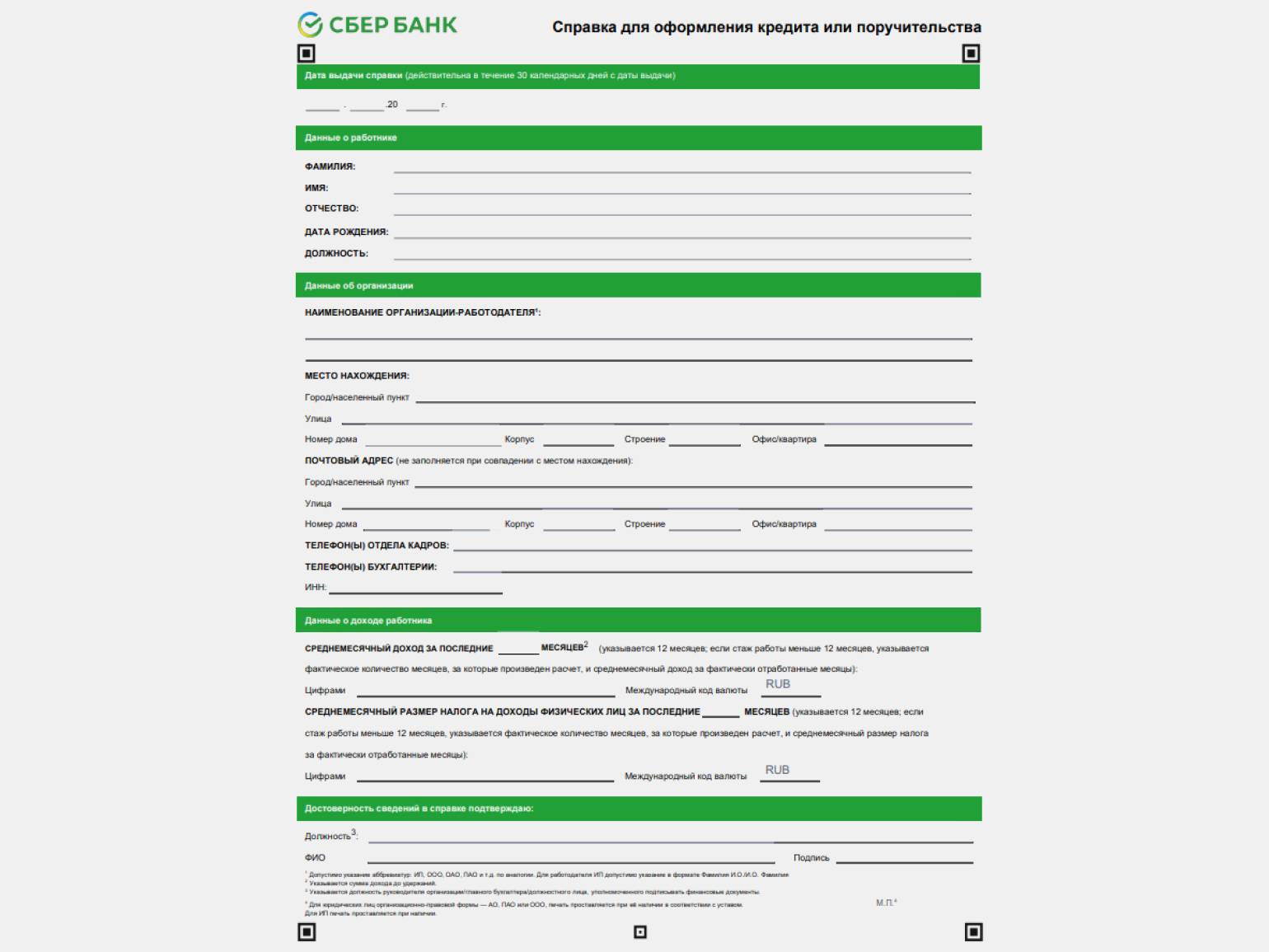 Справка о доходах по форме банка для получения кредита. Справка заполняется на бланке банка — единой формы нет. В ней работодатель может указать не только зарплату, но и другие начисления — «реальный доход» сотрудника. Справка обычно содержит сведения о компании, Ф. И. О. и должность сотрудника, сумму доходов за период. Документ должен быть подписан и заверен главным бухгалтером или руководителем компании-работодателя.