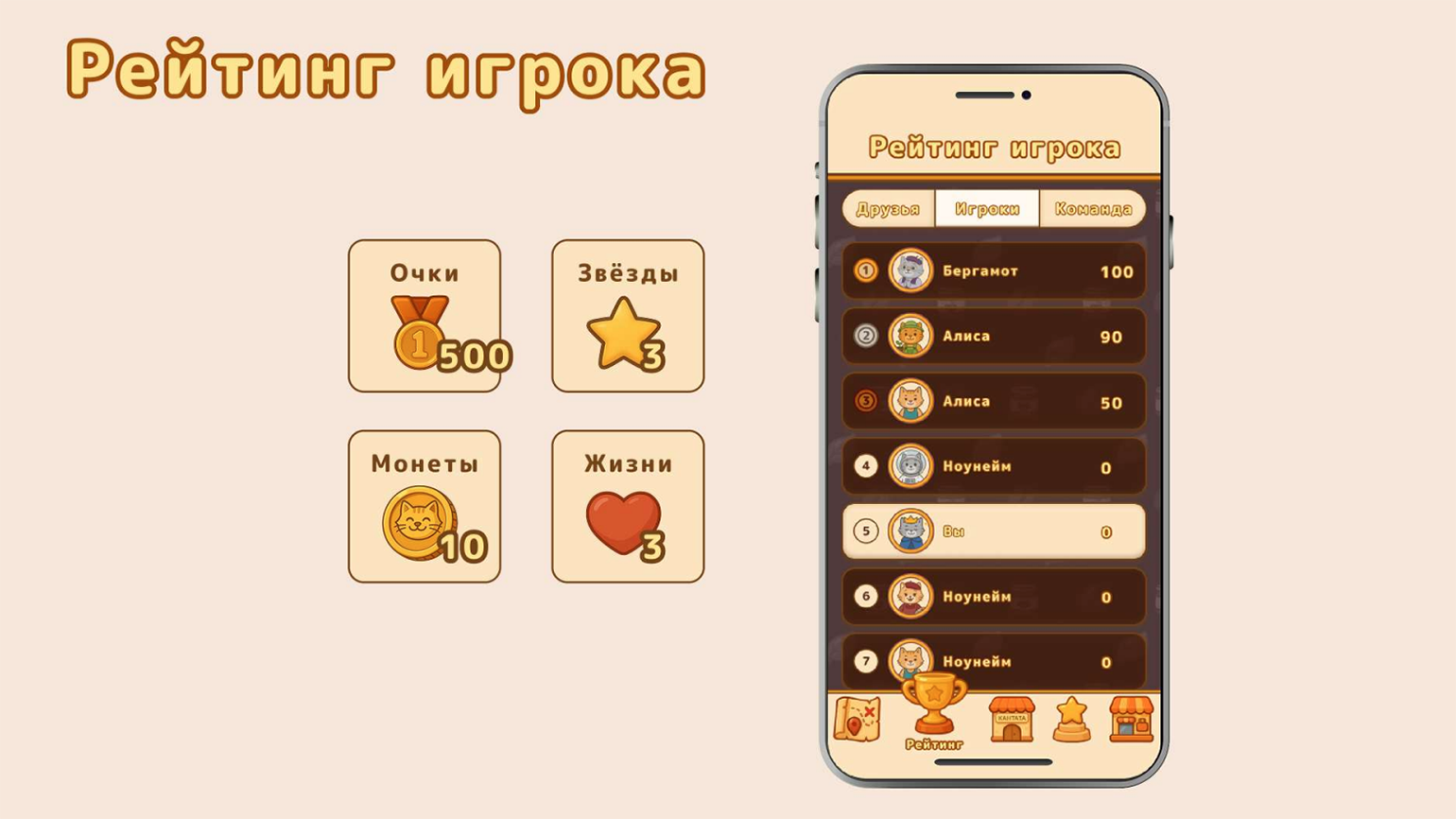 В качестве механики студенты выбрали популярную головоломку «Три в ряд». В ней пользователи могут уровень за уровнем получать награды, бонусы и внутриигровую валюту. За неё во встроенном магазине можно покупать бустеры для прохождения. Эти товары — реальный ассортимент «Кантаты», узнать о котором можно, если нажать на кнопку, а после их можно приобрести, но уже в реальной жизни.