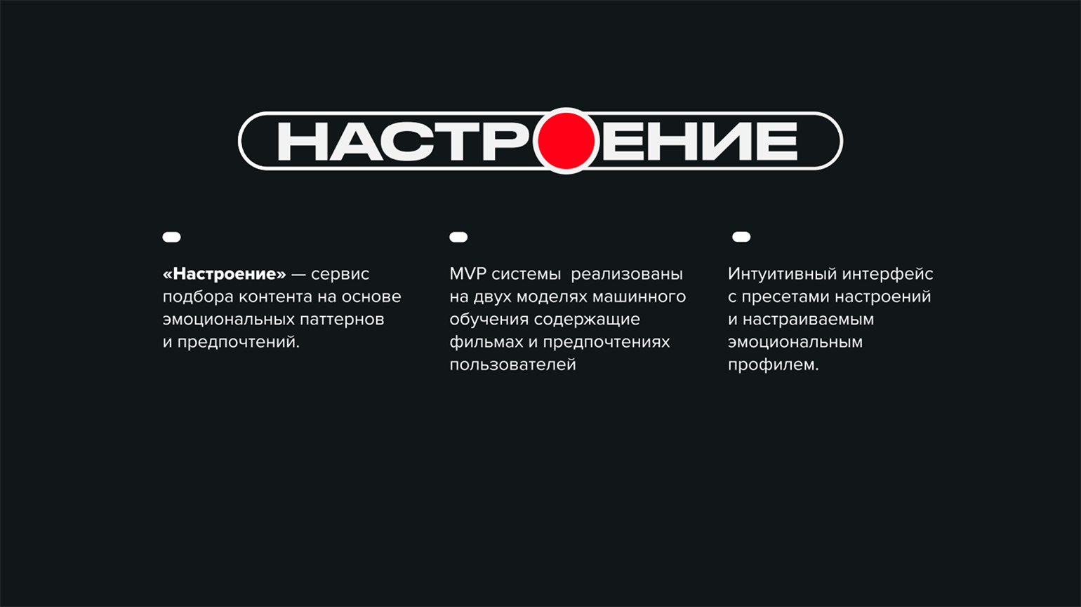 После бизнеса и знакомств настала очередь искусства. Команда №2 презентовала функциональный модуль с рекомендательной системой на базе искусственного интеллекта. Эта нейросетевая фича должна предлагать фильмы и сериалы пользователям онлайн-кинотеатра на основе их предпочтений. Систему заказала компания Start. Защищал проект «Настроение» техлид команды Руслан Рамазанов.