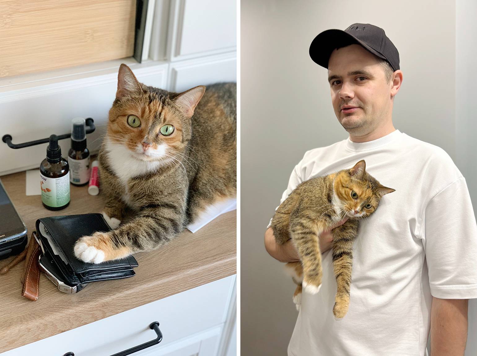 — Да, у нас с женой есть кошка Мисси. Она появилась неожиданно: за неделю до нашей свадьбы сбежала от соседей-студентов и забежала к нам в квартиру. С тех пор живёт с нами и, конечно, стала полноправным членом семьи. Телефон теперь наполовину забит её фотографиями.