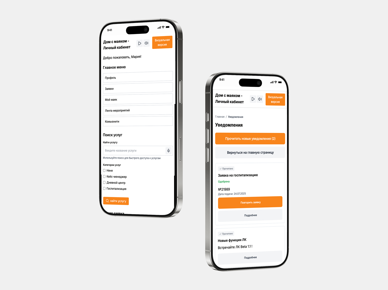 Приложение позволяет пользователям быстро оформлять заявки на услуги «Дома с маяком», вести календарь встреч, хранить документы, получать уведомления и обращаться за поддержкой в чат-бот. Особое внимание разработчики уделили пользовательскому опыту и месту сервиса в повседневности клиентов — MVP создали на основе концепта mobile first и принципов мобильной вёрстки.