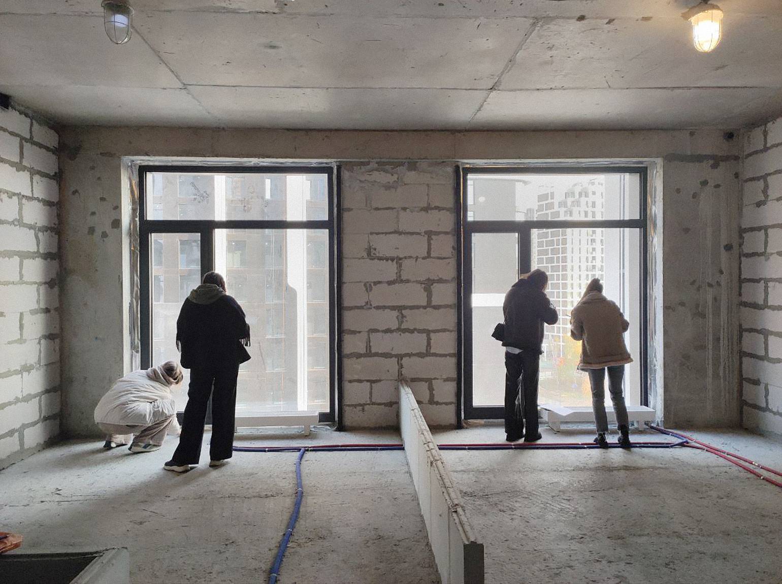 — План помещения по данным от застройщика может отличаться от размеров по факту, поэтому важно выезжать на замеры и перепроверять информацию. Например, толщину «пирога» пола можно узнать только на месте, выяснив расстояние от бетонного перекрытия до порога входной двери. Кроме того, для разработки проекта полезно посмотреть на окрестности: можно вдохновиться видом из окна или архитектурой здания. Студенты провели замеры быстро и чётко по инструкции, закончили раньше, чем планировалось.