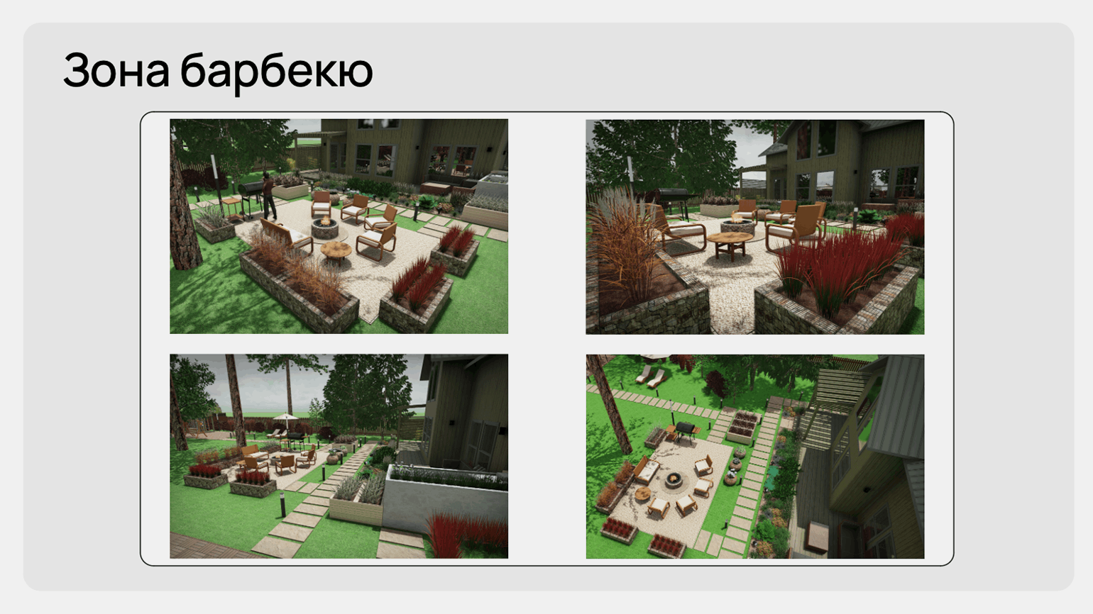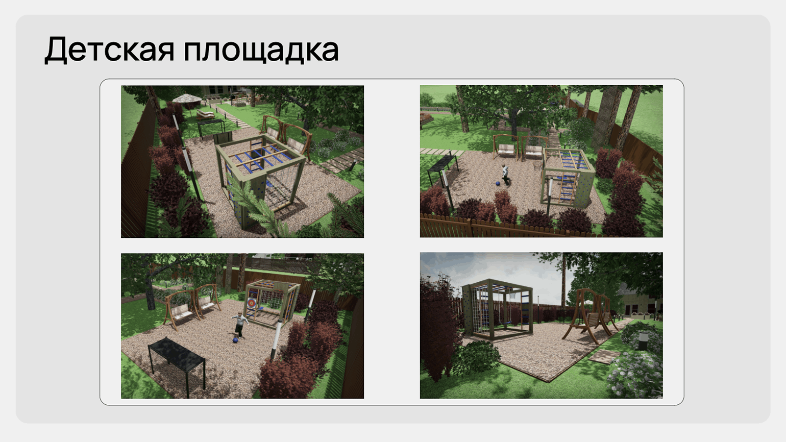 Эксперты похвалили работу Анастасии: старший преподаватель направления «Дизайн» Skillbox Марина Мозжерина отметила продуманное зонирование — например, детскую площадку разместили в тени, чтобы за играми детей было удобно наблюдать, — а также грамотное внедрение трендов: вертикального озеленения и многоуровневых грядок.